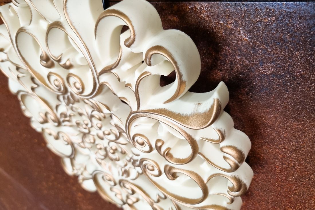 Rendu très beau, cet ornement est en plastique mais trompe l'œil réussi car une fois installé on a l'impression d'avoir du bois.