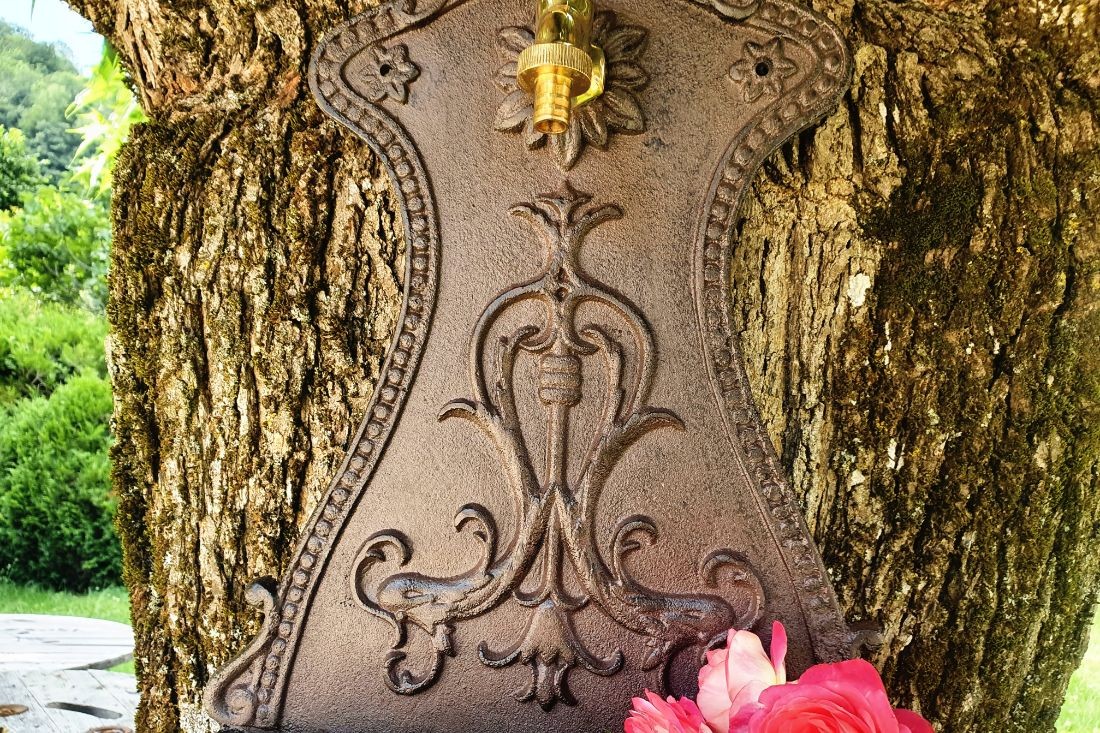Fontaine Bucolique en fonte - Motifs ornements & fleurs - Marron foncé - Robinet couleur laiton - Fixation murale incluse.