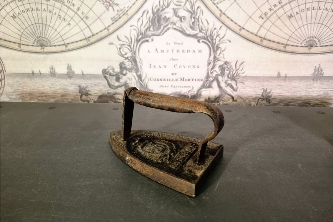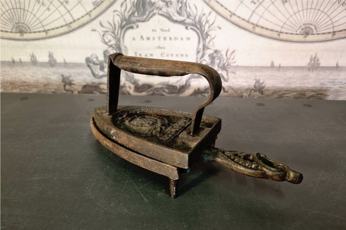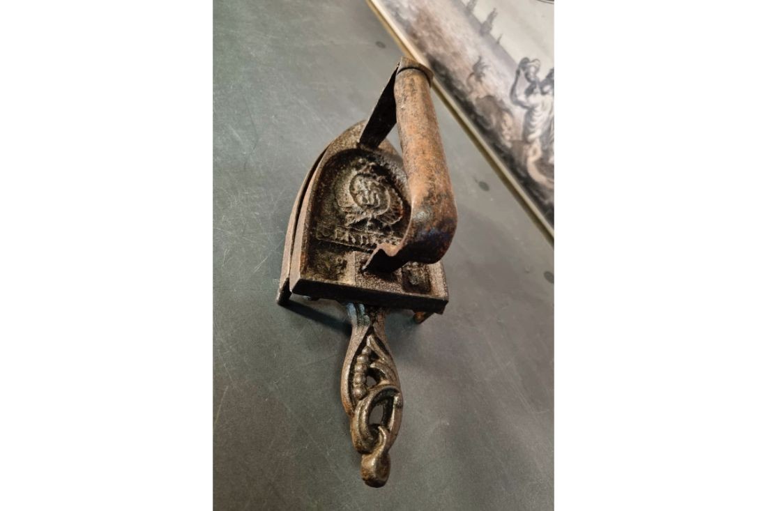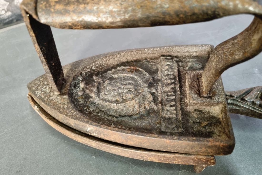 Fer à repasser + support en fonte.