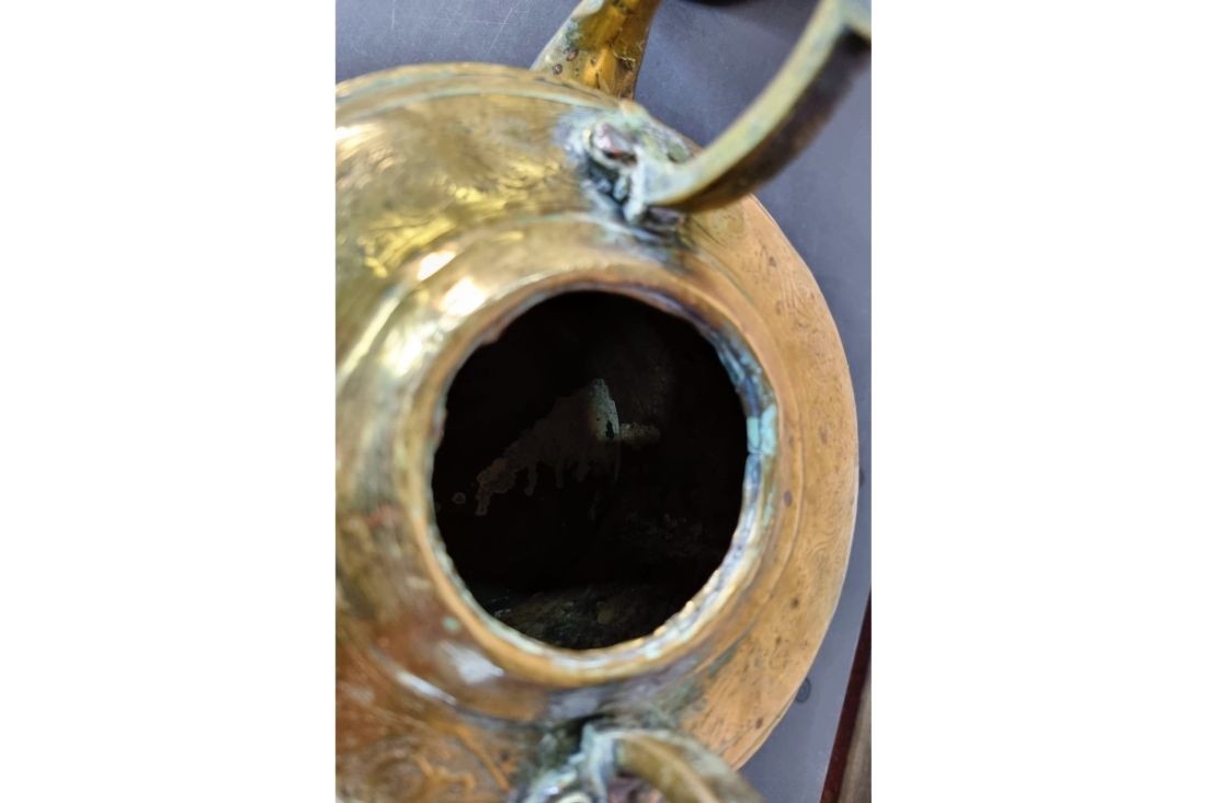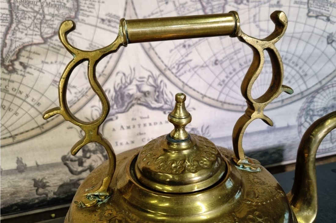 Très belle théière qui donnera une ambiance chic chez vous. La théière est en laiton doré ciselé, vieillie par le temps pour un aspect antique.