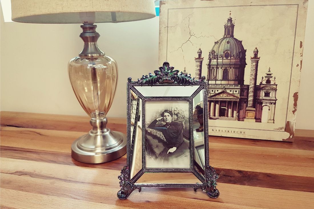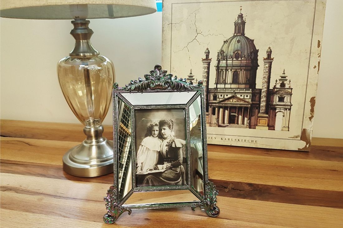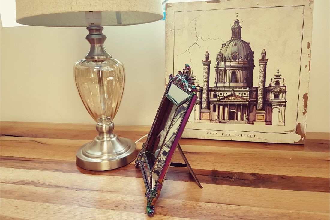 Cadre miroir à poser, effet antique, peut aussi servir de cadre photo 10x15 cm.