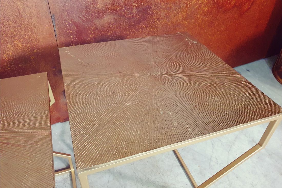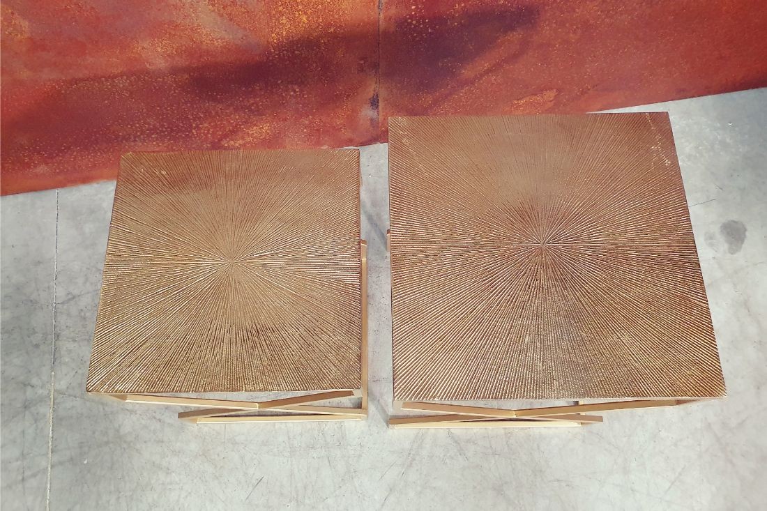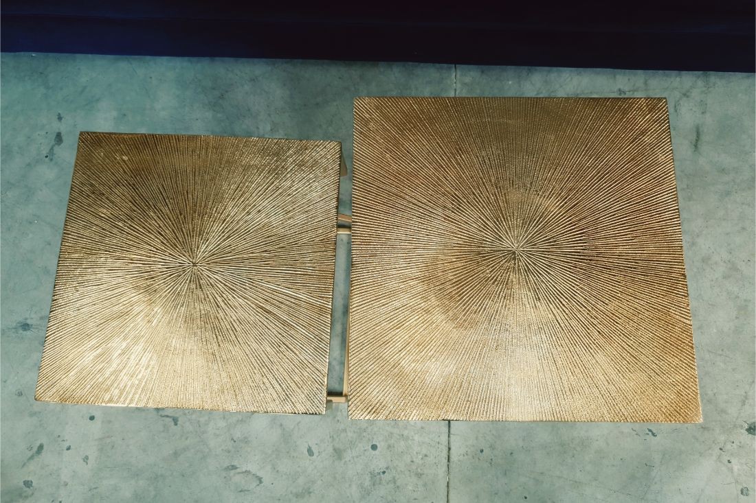 Tables d'appoints gigognes Vintage - Métal doré sculpté - Set de 2 tables - Idéal en table basse, en bout de canapé, dans une entrée en vide-poche, en porte-plante ou table de chevet etc...