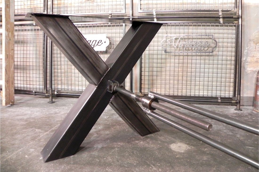 Lot de 2 pieds de table en X avec barre centrale - Acier brut vernis (peinture sur demande).